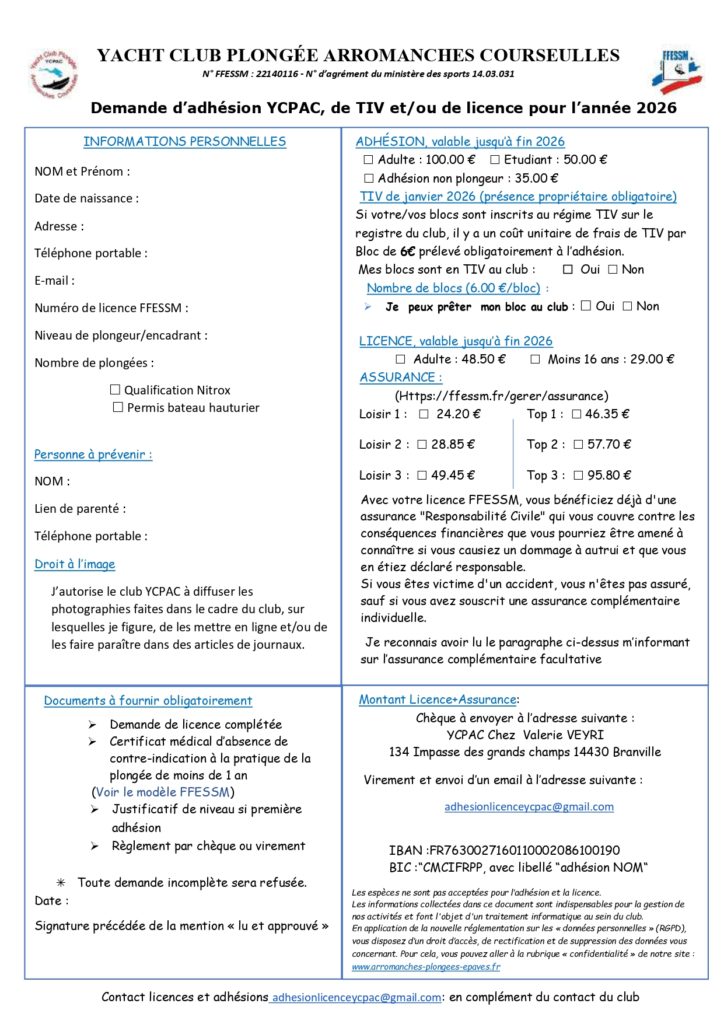 Les adhésions au club YCPAC se font à partir du 01 Janvier au 31 Decembre de l’année en cours .