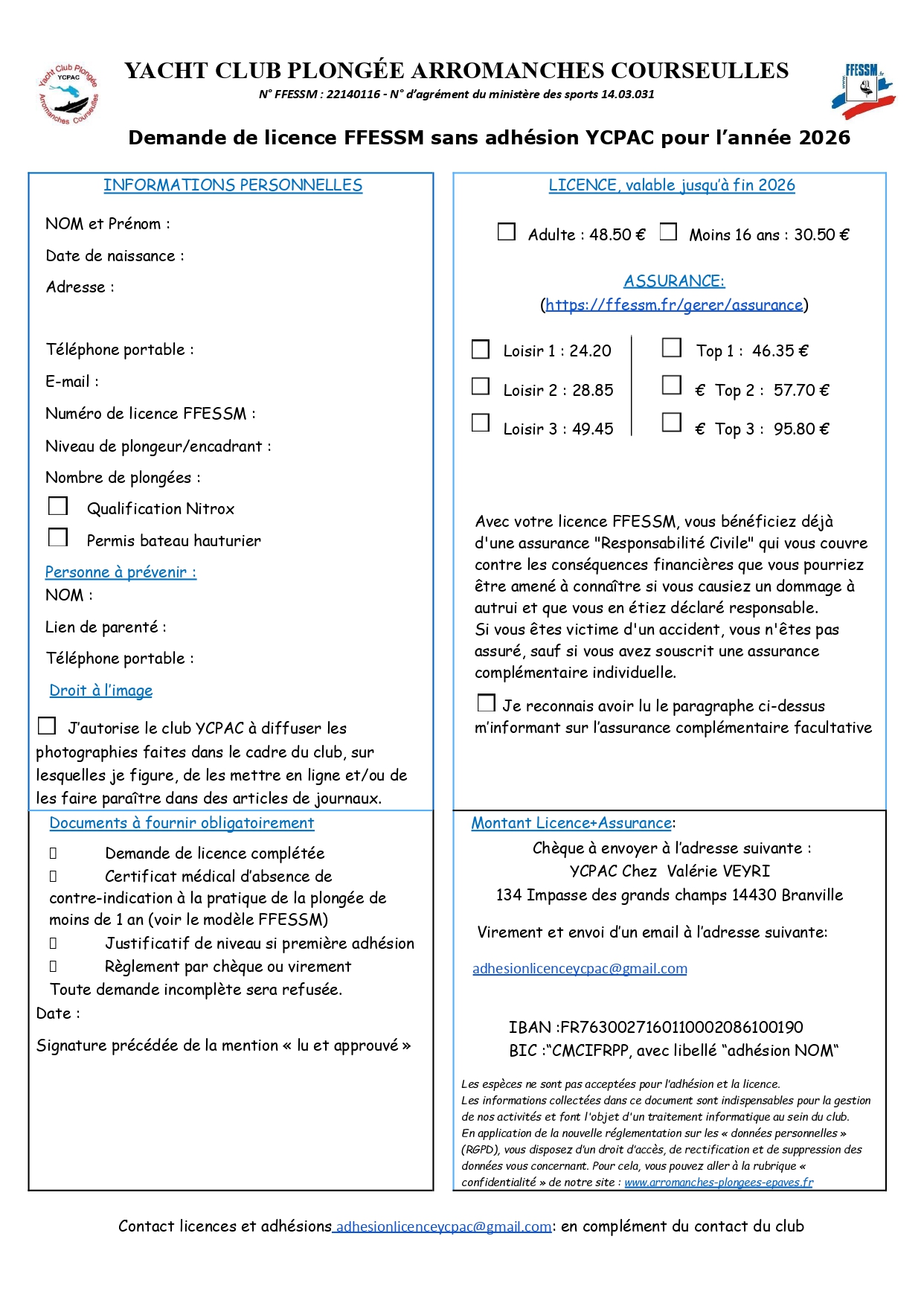 Si vous êtes nouvel adhérent, contactez par le biais de ce mail pour plus de renseignements.