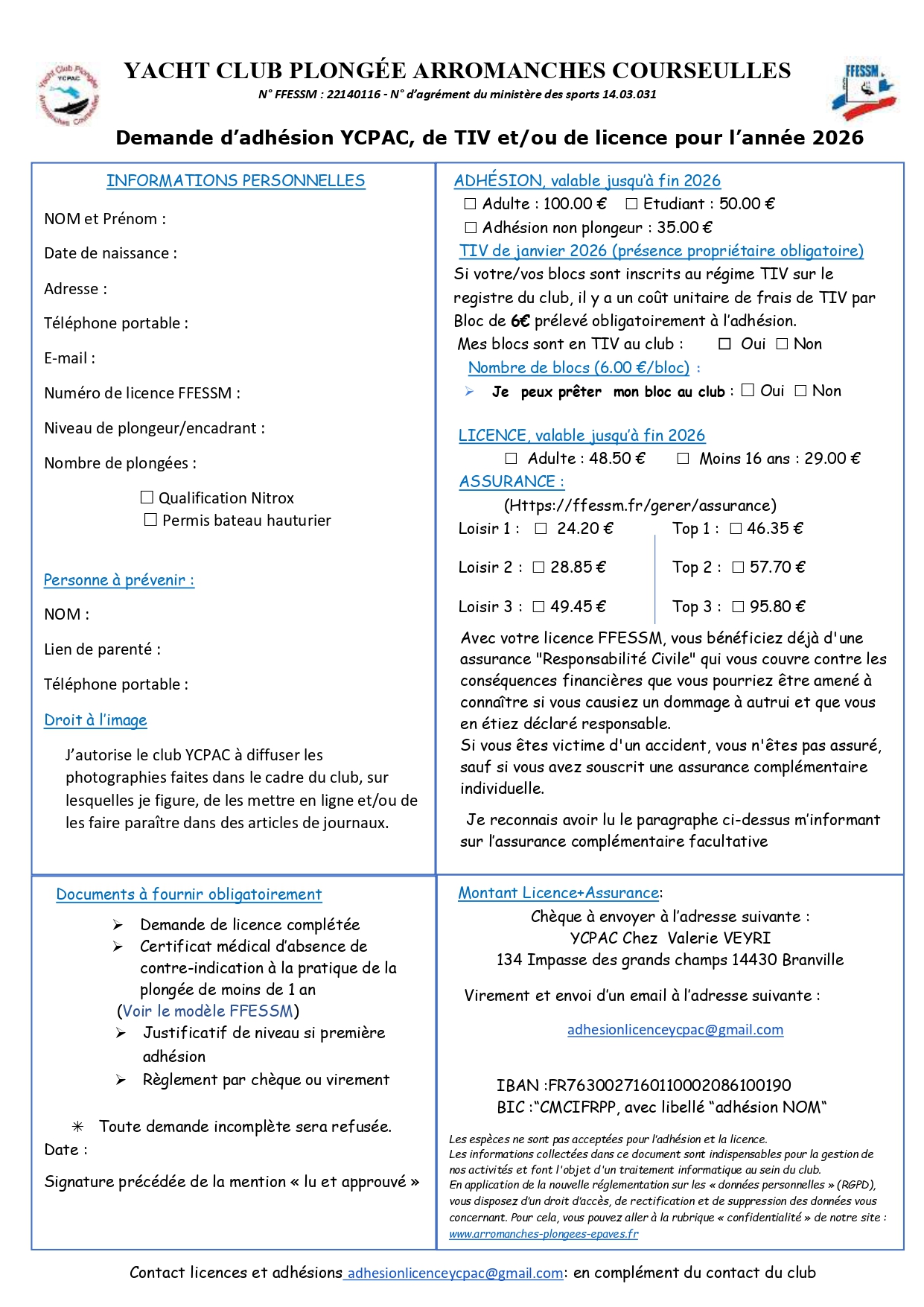 Si vous êtes nouvel adhérent, contactez par le biais de ce mail pour plus de renseignements.